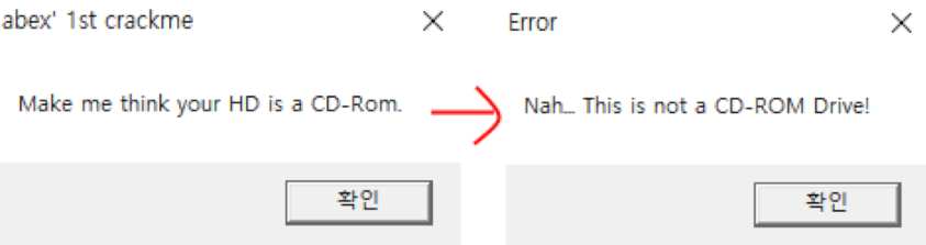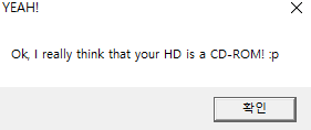 다운받은 exe 파일을 실행하면 위와 같이 CD-Rom을 만들라는 메시지와 CD-Rom Drive가 아니라는 메시지 창이 순서대로 뜨는 걸 알 수 있다