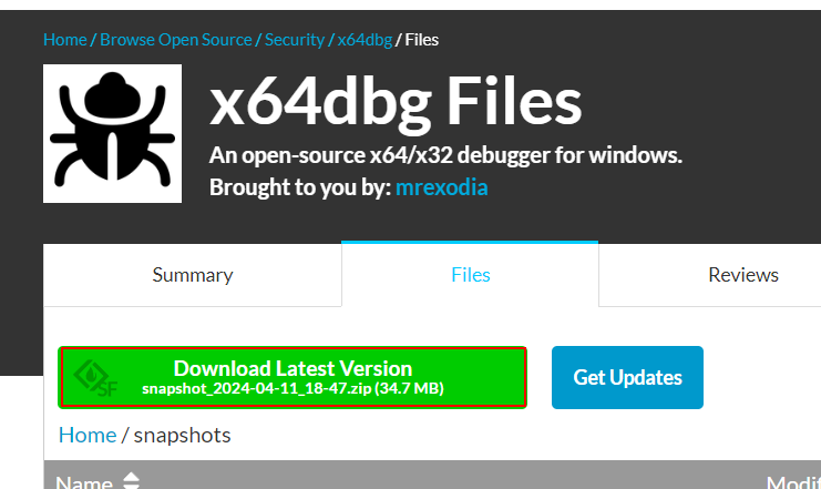 이번 포스팅에서는 x64dbg를 이용하여 hello world를 디버깅해보겠다. dreamhack.io의 x64dbg사용법 강좌를 참고하였다. 1. x64dbg 다운로드 우선 x64dbg를 이전 Debugging Tools 작성글에 나와있는 링크를 통해 다