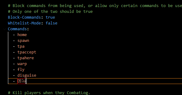 명령어 부분이 나옵니다 여기서 전투도중 금지 명령어를 밑으로 작성해주면 됩니다