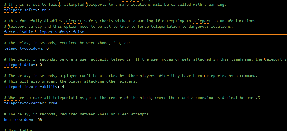 teleport-invulnerability: 0 으로 수정합니다 ( 텔레포트시 무적시간 0초 )