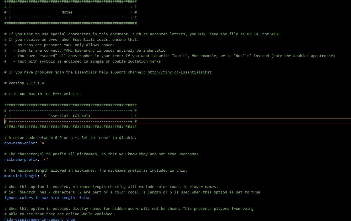 서버팩\plugins\Essentials 경로로 들어가서 config 파일을 열어줍니다
