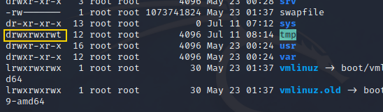 /tmp 디렉터리가 t로 표시되어 있습니다