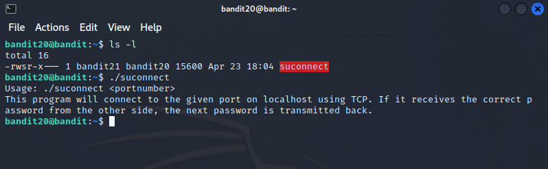 ssh bandit20@bandit.labs.overthewire.org -p 2220